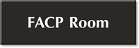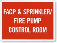 For damp mechanical environments we recommend our FACP and sprinkler fire pump control room sign in aluminum, which is rust-proof and moisture-resistant, though our engraved plastic FACP signs are also a durable option available in multiple designer colors for interior applications.