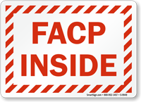 Yes, our FACP inside sign with striped border and projecting sign options are designed to mount over a door or hang from ceiling tiles, making the fire alarm control panel visible from a distance and from multiple angles in large facilities where the panel may not be immediately visible from the main walkway.