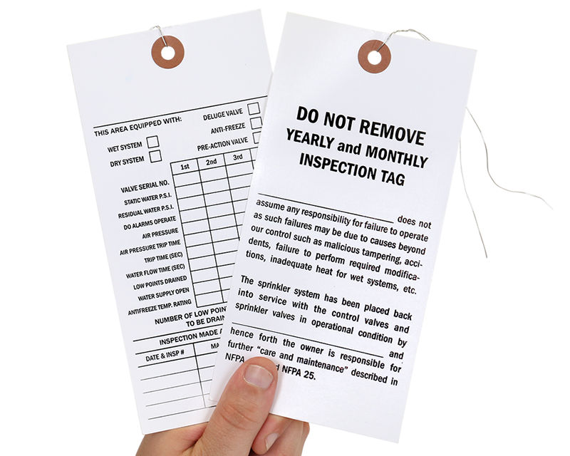 • • Tags are compliant with state-specific sprinkler inspection guidelines.