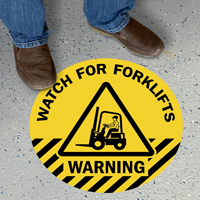 We use these signs, with arrows to indicate direction of forklift traffic, to alert team members that they are about to step into a traffic lane. The signs are high visibility and readily seen by those on foot. The only issue we have had with the signage is that the wording gets worn off with constantly being run over by forklifts. Foot traffic has little effect on the signage.