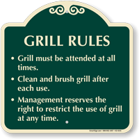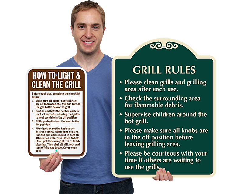 Even a grill master needs a clean workspace. Our comprehensive Grill Rules Signs keep the surrounding area clean and ensure the safety of the campsite and full bellies foryour guests.