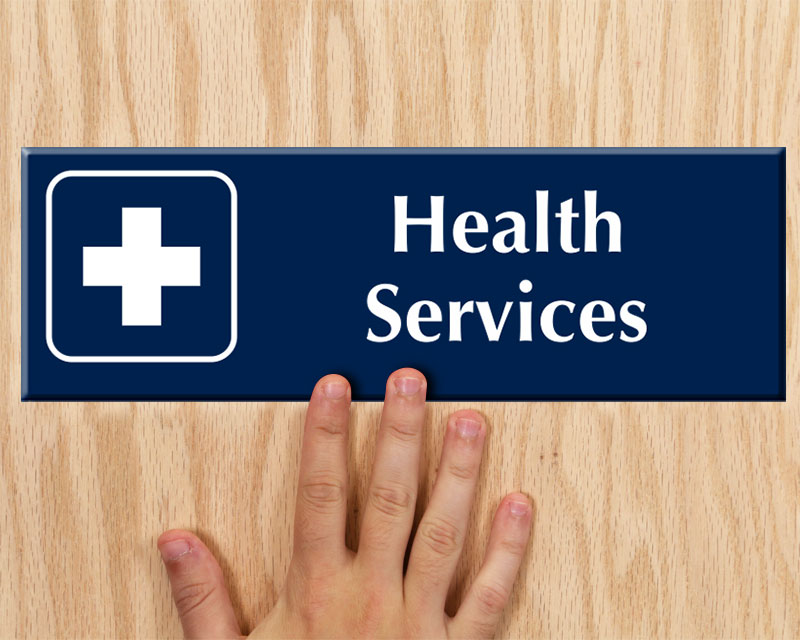 Use professional signs to mark Health Services in your facility. Universally recognized first aid symbol ensures there is no confusion in room identification.