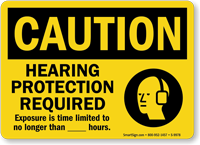 OSHA 29 CFR 1910.95 requires hearing protection in areas where noise exposure equals or exceeds 85 decibels as an 8-hour time-weighted average, and our caution hearing protection required sign ensures workers don PPE before exposure begins in multiple sizes and materials to satisfy this requirement.