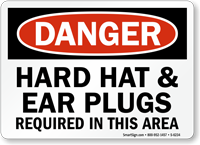 What'd you say? Exposure to loud noises, such as blasting, heavy machinery, explosions, fireworks, or jet engines can cause irreversible hearing loss. Use hearing protection signs to ensure the safety of your employees.