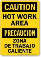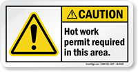 Our hot work permit signs are available in OSHA-compliant formats for welding, cutting, and brazing operations in aluminum, rigid plastic, and adhesive vinyl for permanent or temporary posting near welding stations and hot work zones.