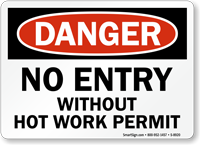 Yes, our hot work permit sign templates can be customized to include your facility's specific permit process steps, contact numbers, or supervisor authorization requirements, and our warning hot work permit welding sign is one of our most popular starting points for facilities that want a specific welding-focused message.