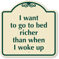18 in. X 18 in. SignatureSign: I Want To Go To Bed Richer Than When I Woke Up K-0322