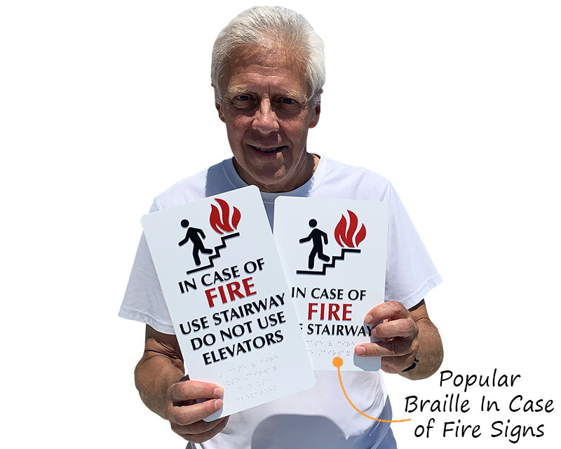 Yes. ADA and California standards require that emergency elevator signs - including in case of fire notices - include Braille in addition to raised pictograms and text. Our TactileTouch in case of fire signs meet the latest ADA and California standards, featuring Braille, approved pictograms, and the required font for accessible emergency communication at every elevator call station.