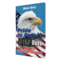 • • Digital Safety Scoreboards are an inexpensive way to remind about safety. Try our digital electronic display, magnetic numbers, or zip track numbers.