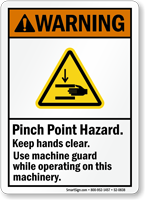 Yes, our warning pinch points keep hands clear sign and other pictogram options from our keep hands clear signs collection communicate the restriction visually regardless of language or literacy level, especially effective in high-noise environments and multilingual facilities where workers need to process machine hazard restrictions at a glance.