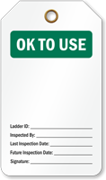 • • Ladder Inspection Tags can be easily hung from a ladder and clearly indicate if it is ready for use.