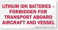 • • Lithium battery forbidden markings follows DOT’s HM-224C requirements for when transporting batteries is not permitted.