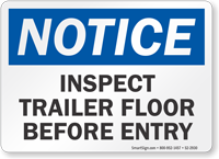 Signs should be placed at every dock door (e.g., chock wheels), on the dock edge, and at all entrances to the loading dock area (caution: forklift traffic).