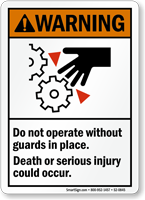 Do not operate without guards in place sign
