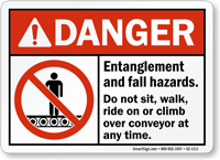 Our signs cover a wide range of machinery risks, including pinch points, moving parts, entanglement hazards from loose clothing or jewelry, and dangers from equipment that starts automatically. These warnings are crucial for keeping operators and nearby personnel safe.