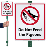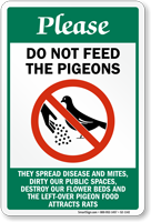 Feeding pigeons can result in several health hazards in addition to causing potential damage to buildings by the way of pigeon droppings and nesting. Use Do Not Feed the Pigeons Signs to inform people to refrain from feeding these birds.