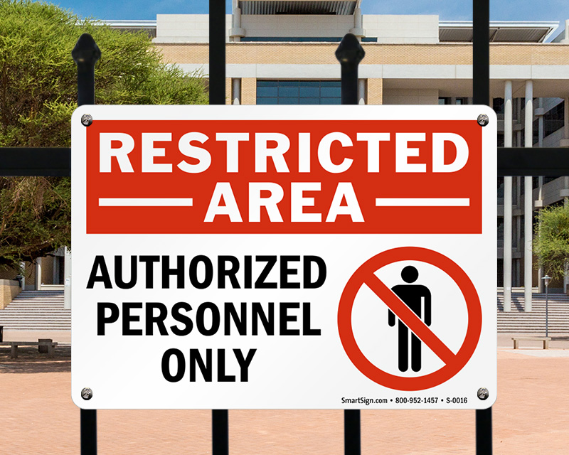 While all our restricted area signs are rather durable, and you may choose any, our rustproof rigid aluminum signs are designed to last at least 10 years outdoors and withstand water, chemicals, and high temperatures. Our hi-intensity and diamond-grade reflective aluminum signs are even more durable than regular aluminum and will easily last outdoors for over twelve years.