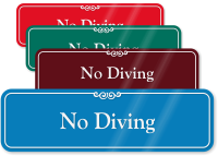 A. Our collection of “No Diving” signs has something to meet every requirement. We offer “No Diving” signs in English, Spanish, and English+Spanish (bilingual signs). You may choose from standard and designer options, or maybe create a custom sign in no time!