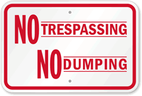 No Dumping Signs keep your property from looking like a garbage heap. Let visitors, residents, or potential violators know that there is absolutely no illegal dumping on your land.