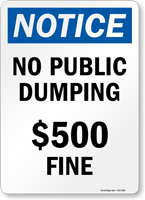 No Dumping Signs keep your property from looking like a garbage heap. Let visitors, residents, or potential violators know that there is absolutely no illegal dumping on your land.
