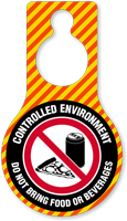 Door hangers are lightweight and can be suspended from the doorknob or door handle to display the No Food or Drink message. Door tags are ideal for controlled environments, chemical storage rooms, electrical rooms, or any other enclosed space where there is a risk of contamination, fire, etc. These tags are also suitable for areas where eating food would disturb the decorum, like meeting rooms, conference rooms, etc.