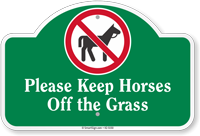 Many trails and pathways are not safe for horses. No Horses Signs politely define the right etiquette for your property or a hiking trail.