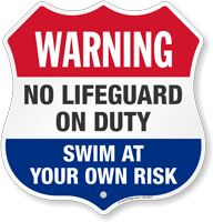 Explore our extensive collection of No Lifeguard On Duty Signs! Ensure the safety of your pool area by effectively communicating the absence of a lifeguard on duty and swimmers must swim at their own risk.