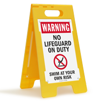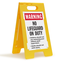Yes. Our portable sign options like FloorBoss Signs and ConeBoss Signs are ideal for temporary applications like the time when a lifeguard takes a break. FloorBoss Free-Standing Sign folds flat for easy storage when not in use. This plastic stand has two sign panels with a “No Lifeguard on Duty” message for both sides. ConeBoss “No Lifeguard on Duty” Sign fits onto the top of any traffic or safety cone. Even this sign can be temporarily placed till the lifeguard comes back on duty. These two signs are lightweight and easy to carry too.