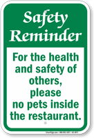 Food preparation areas, healthcare facilities, and certain retail establishments must post no-pets signs per health codes, with service animal exemptions requiring careful wording to avoid discrimination violations.