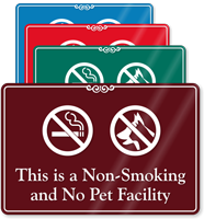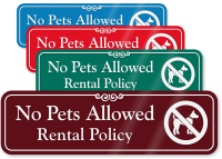 Keep dogs out of your facility with our No Pets Allowed Signs. Place a proven and effective reminder to keep pets and animals under control. Post your policy right at the entrance, on a door or window.