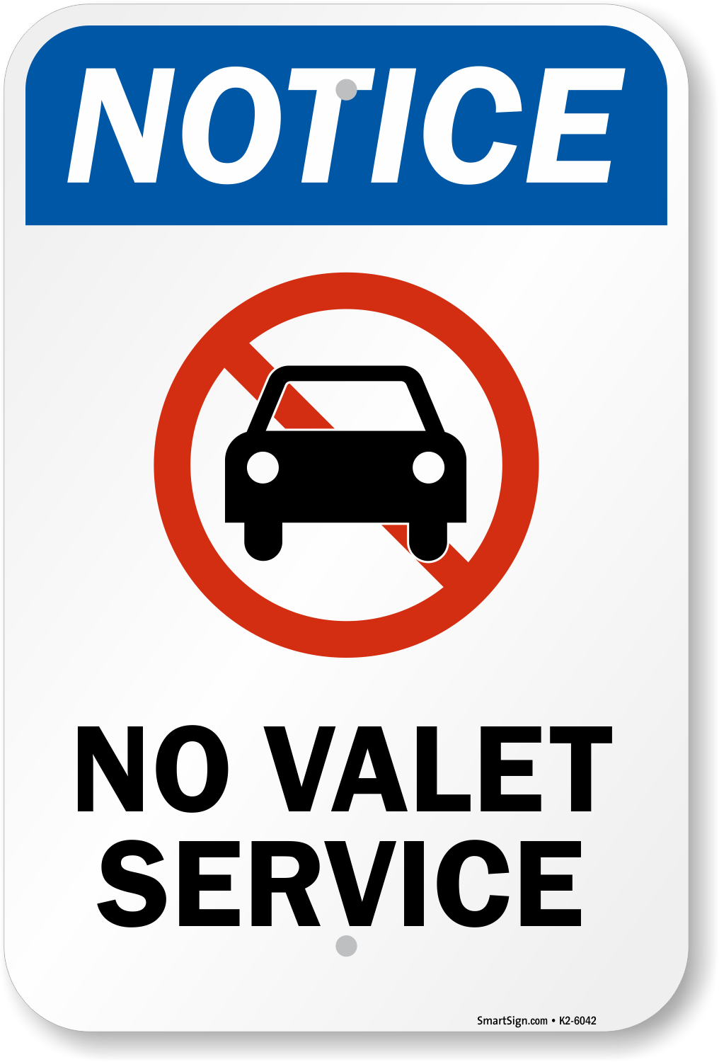 Parking Notice Sign: No Valet Service (with Symbol) K2-6042