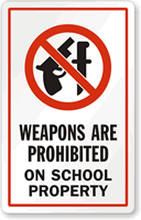 • • Don't take chances with children's safety. Many of our school signs help you prohibit both guns and drugs.