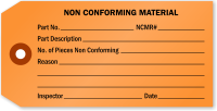 The general purpose of Non-Conforming Tags is to ensure quality management – so that statutory and regulatory conditions related to the product are met. ISO (International Organization for Standardization) 9001 deals with the requirements that an organization wishing to meet this standard has to fulfill to be compliant. Specifically ISO 9001:2000 states, "The organization shall ensure that product which does not conform to product requirements is identified and controlled to prevent its unintended use or delivery." A favorite for inspectors, our Non-Conforming Tags help employees indicate products that will not meet this specified criteria. Great for segregating defective or out-of-spec material and equipment, these tags feature blank spaces for comments –indicating if a non-conforming product will be repaired, reworked, scrapped or regraded. Browse our selection of Non-Conforming Tags below and avert defective materials, products, and equipment from being processed, consumed, or shipped.
