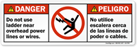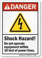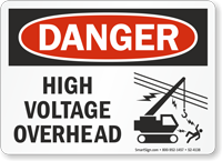 OSHA requires that workers be warned about overhead electrical hazards on construction sites, particularly when equipment operation near power lines creates a risk of contact, and our overhead power line signs are available in Caution, Warning, and Danger signal words appropriate to the voltage level present to help fulfill this requirement.