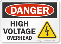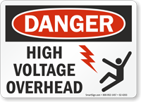 OSHA requires that workers be warned about overhead electrical hazards on construction sites, particularly when equipment operation near power lines creates a risk of contact, and our overhead power line signs are available in Caution, Warning, and Danger signal words appropriate to the voltage level present to help fulfill this requirement.