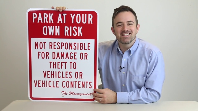 Park At Your Own Risk Not Responsible For Damage To Vehicle Sign