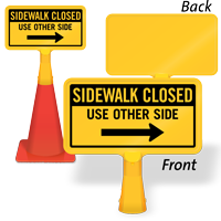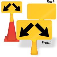 Size: 8" x 15" Material type: Reflective “No-Tip” Traffic Cone Sign - Two Sides Printed
