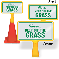 Size: 8" x 15" Material type: Reflective “No-Tip” Traffic Cone Sign - Two Sides Printed