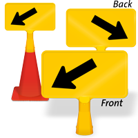 Size: 8" x 15" Material type: Reflective “No-Tip” Traffic Cone Sign - Two Sides Printed