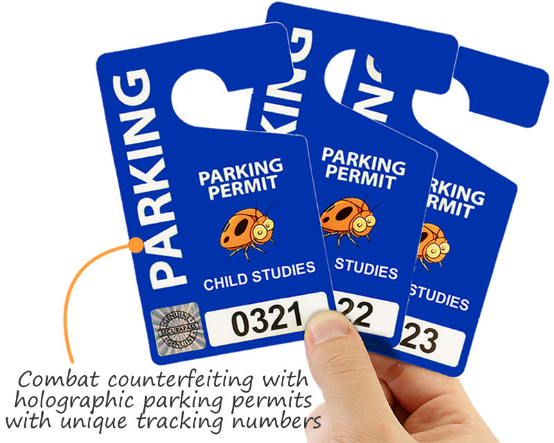 Never let anyone get by with a fake pass. SecuraPass™ parking tags and decals incorporate important security features like no-copy backgrounds, unique numbering, and holograms.