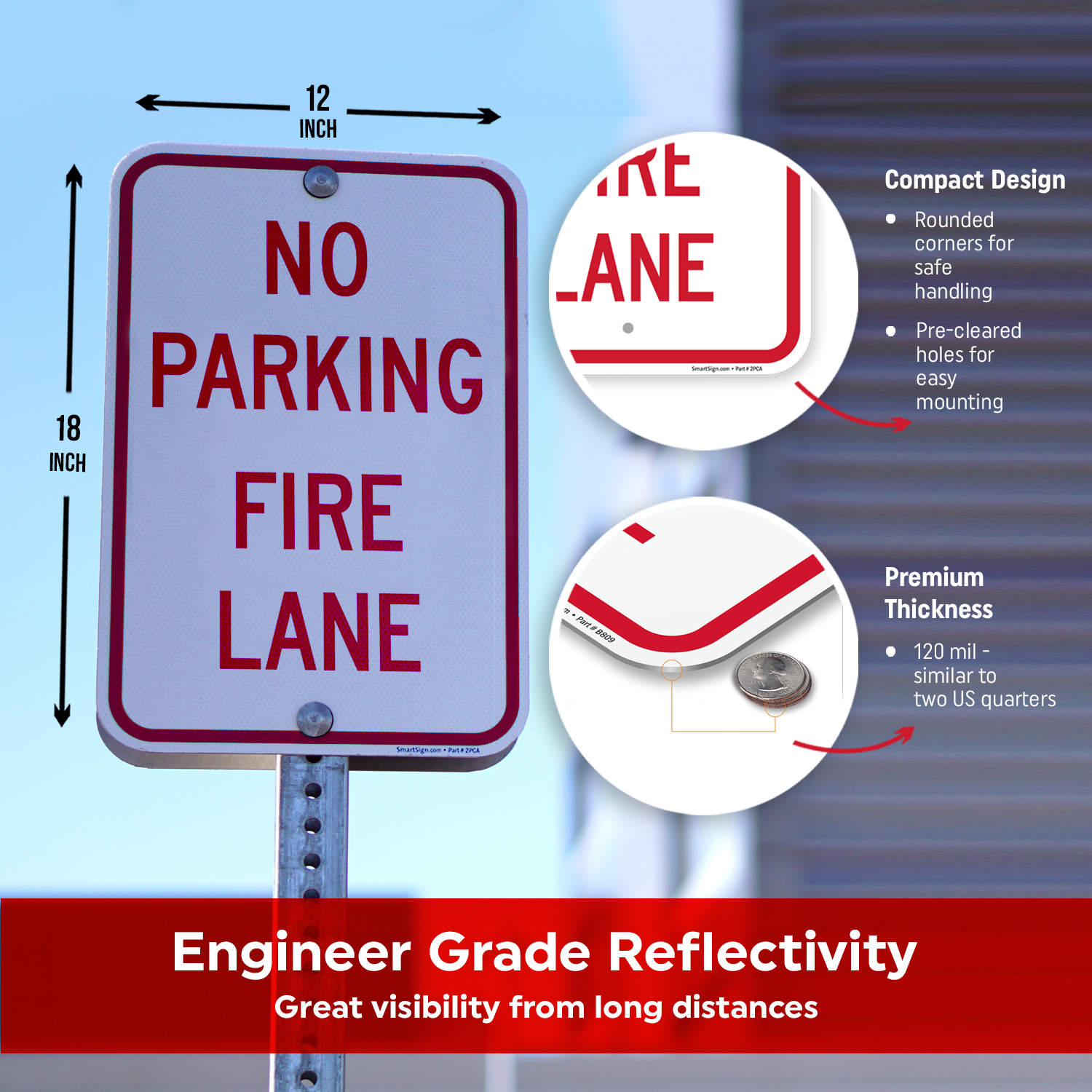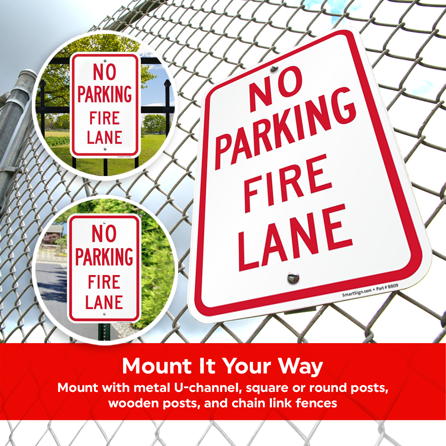 Fire lane tickets can lead to hefty fines. Protect your visitors from unnecessary fines with a No Parking sign!