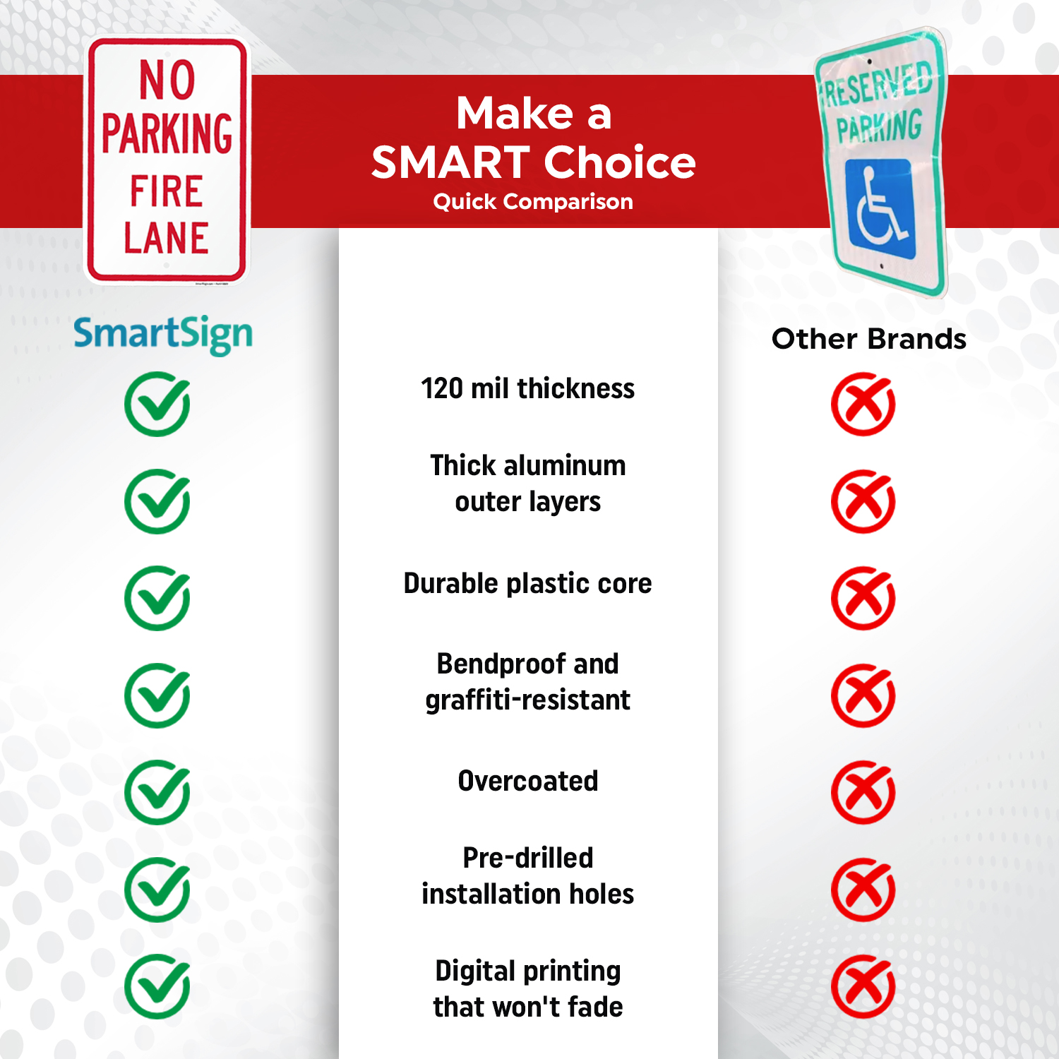 • The No Parking sign is made from rust-free, lightweight aluminum.