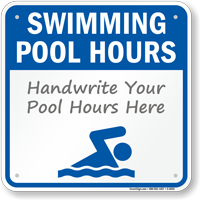 Yes, most pool hours signs are customizable. You can use vinyl numbers to change the opening and closing times as the seasons change (e.g., staying open later in summer). For full customization, check our custom swimming pool signs.