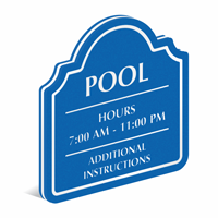 Yes, most pool hours signs are customizable. You can use vinyl numbers to change the opening and closing times as the seasons change (e.g., staying open later in summer). For full customization, check our custom swimming pool signs.