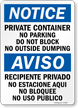OSHA Notice Sign: Private Container - No Parking, No Outside Dumping  (S2-5200)