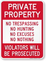 Private Property No Trespassing Signs