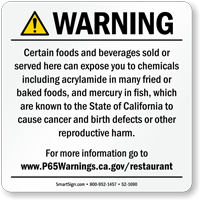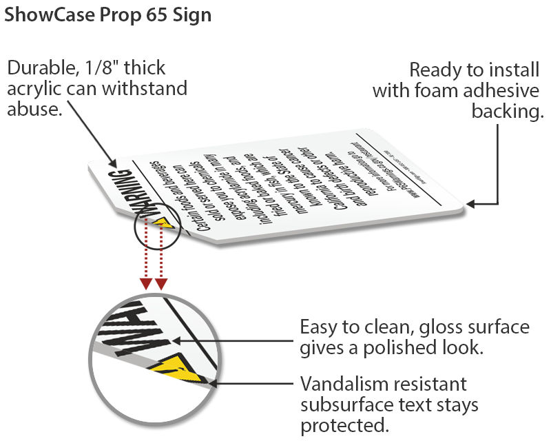 California businesses with 10 or more employees must post Prop 65 warning signs when they knowingly expose individuals to chemicals known to cause cancer or reproductive toxicity, and our compliant Prop 65 signs are available for public entrances, points of sale, and other required exposure locations depending on the type of business.