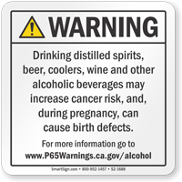 A Prop 65 warning sign must include the specified warning language at a minimum 72-point font size and list the relevant chemical name and exposure source if required, and our California Prop 65 short-form cancer and reproductive harm warning label is formatted to meet these legal requirements in a compact, compliant format for a variety of posting locations.