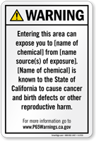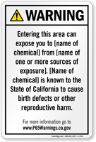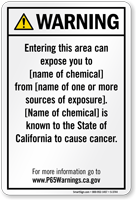 Yes, our consumer product exposure Prop 65 sign is one of our customizable templates where you can specify the chemical name and source of exposure, formatted at the minimum 72-point font size required by law with sign size adjusted as needed to accommodate additional chemical information.