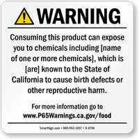 Yes, our consumer product exposure Prop 65 sign is one of our customizable templates where you can specify the chemical name and source of exposure, formatted at the minimum 72-point font size required by law with sign size adjusted as needed to accommodate additional chemical information.